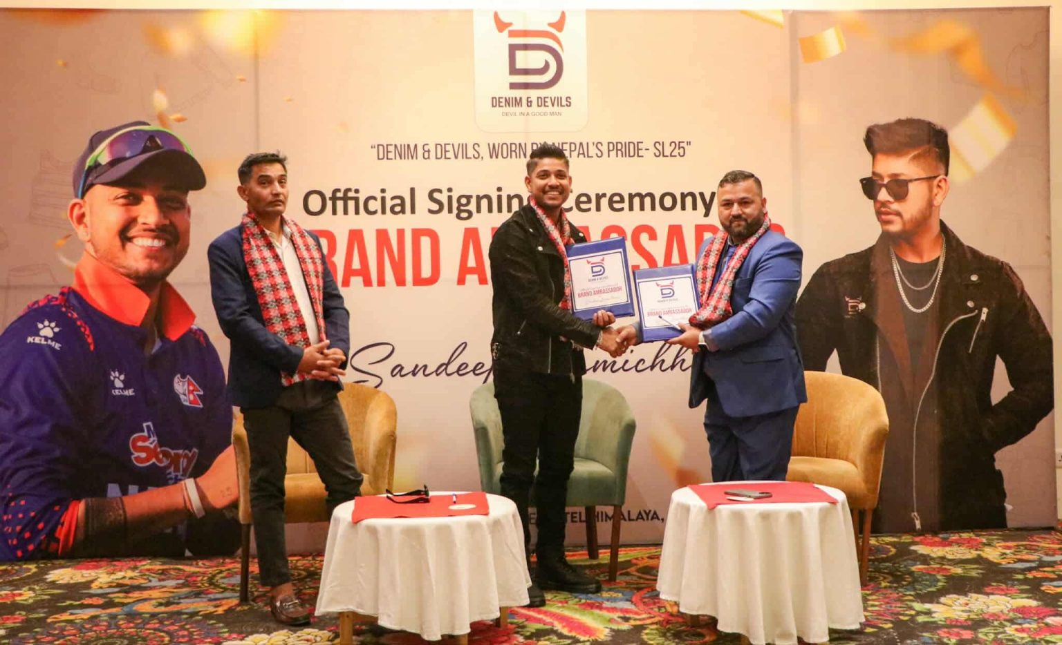 Nepal’s star cricketer and former national team captain Sandeep Lamichhane has officially signed on as the brand ambassador for popular clothing brand Denim & Devil. The announcement was made during a special event held on Thursday.